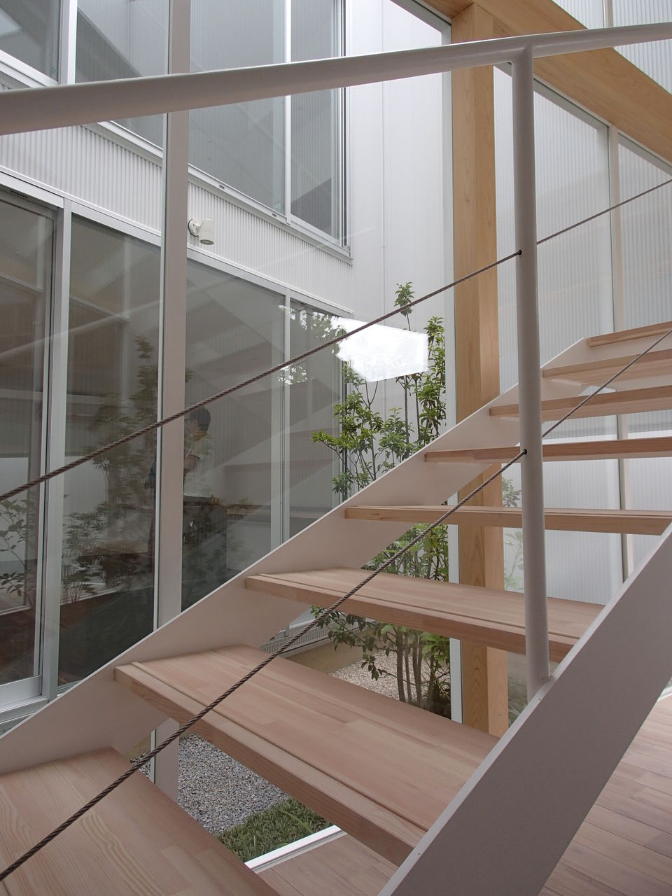 2014年8月11日 Author:p0-a Comments:0 R邸工事のひとコマ-6 階段の手摺り。手に触れるところと支柱はパイプで作ってありますが、それ以外はステンレスのワイヤーを通してあります。細いですけどわかります?写真の通り、支柱のところはそのワイヤーを通すために穴が開けてあるわけですが、ちゃんと階段の勾配に合わせて穴の位置を調整してあります。だからワイヤーが自然な感じで、すぅっと斜めに通っています。いや、そんなんアタリマエとかって言いますけどね(笑)、そのちょっとした調整が大事なんですよぉ。 関連記事 R邸工事のひとコマ-3 T邸-04 棟上げ T邸-05 光庭 No tags
